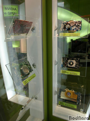 Hall 1¿¡ À§Ä¡ÇÑ nVIDIA ºÎ½º´Â À̹ø ÄÄÇ»ÅØ½º 2005¿¡ ½ÅÁ¦Ç°À» Àü½ÃÇÏÁö ¾Ê¾Ò´Ù. ATI ¿ª½Ã »õ·Î¿î ±×·¡ÇÈ Ä¨¼ÂÀ» ¼±º¸ÀÌÁø