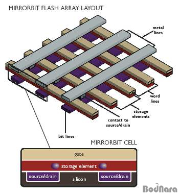 ÁýÀûµµ°¡ ³ô¾ÆÁö±â ¾î·Á¿î NOR ¸Þ¸ð¸®¸¦ 1Gb ¿ë·®±îÁö Ãâ½ÃÇÒ ¼ö ÀÖ°Ô µÇ¾ú´ø °ÍÀº, ½ºÆÒ¼ÇÀÇ ¹Ì·¯ºñÆ®±â¼ú ´öºÐÀÌ´Ù. NOR ¸Þ¸ð¸®³ª NAND ¸Þ¸ð¸®³ª ¹èÄ¡ÀÇ Â÷ÀÌÀÏ »Ó °¢ ¼¿Àº µ¿ÀÏÇѵ¥, ½ºÆÒ¼ÇÀÇ ¹Ì·¯ºñÆ® ±â¼úÀº ÇÑ ¼¿ÀÇ ¾çÂÊ ³¡ µ¥ÀÌÅ͸¦ ´ã¾Æ ÇÑ ¼¿ÀÌ µÎ ºñÆ®¸¦ ´ãµµ·Ï ¸¸µç ±â¼úÀÌ´Ù. À̸¦ ÅëÇØ 1Gb NAND°¡ 80~90§±¿¡ µé¾î°¬´ø °ÍÀ» µ¿ÀÏ ¿ë·®À» ±¸ÇöÇÑ ORNANDµµ 82§± ¾È¿¡ ³ÖÀ» ¼ö ÀÖ°Ô µÇ¾ú´Ù.