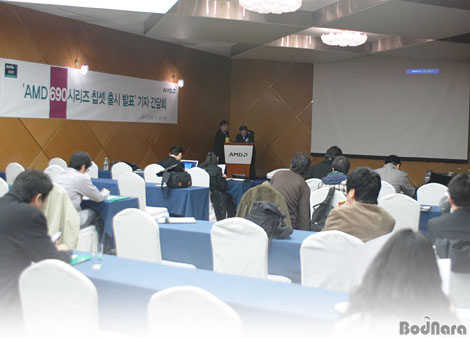 Çà»ç ½ÃÀÛÀº AMD ÄÚ¸®¾Æ ¹Ú¿ëÁø ´ëÇ¥ÀÇ Àλ縻·Î ½ÃÀ۵ǾúÀ¸¸ç PPT ÀڷḦ ÅëÇØ 690G Ĩ¼Â Á¦Ç°±ºÀÇ ±¸¼º°ú ½ºÆå Á¤º¸°¡ °ø°³µÇ¾ú´Ù.