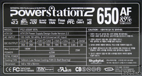 ½ºÄ«À̵ðÁöÅÐ PowerStation2 650AF 85%(ÀÌÇÏ PS2-650AF)´Â Ǫ¸¥ºûÀÌ µµ´Â °ËÀº»ö ¿ÜÇüÀ» Çϰí ÀÖ´Ù. ÀÌ´Â ¿ÜÇüÀÇ ¼Õ»óÀ̳ª ºÎ½ÄÀ» ¹æÁöÇϱâ À§ÇØ ¿ïÆ®¶ó ÄÚÆÃÀÌ µÇ¾î Àֱ⠶§¹®À̸ç, ÄÚÆÃÀ¸·Î ¾à°£ÀÇ ¹Ý»ç°¡ ÀÖÀ» Á¤µµ´Ù.