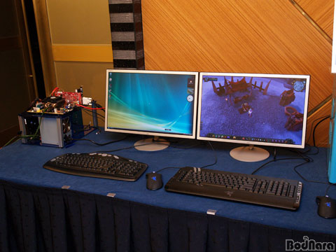AMD 780 ½Ã¸®Áî Ĩ¼ÂµéÀ» »ç¿ëÇÑ ¸ÞÀκ¸µå µ¥¸ð ½Ã½ºÅÛ°ú ÇÔ²² °¢ Á¦Á¶»çµéÀÇ ¸ÞÀκ¸µå Á¦Ç°±º ¿ª½Ã ¹ßǥȸÀå¿¡ ¸¶·ÃµÇ°í ÀÖ¾î µ¿ÀÛÇÏ´Â ¸ð½À µîµµ È®ÀÎÇÒ ¼ö ÀÖ¾ú´Ù.