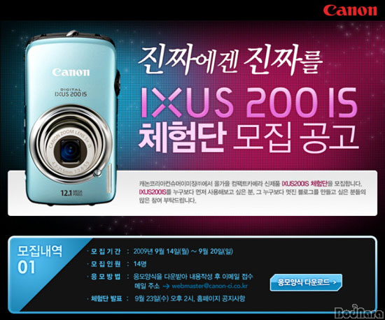 ij³íÄÚ¸®¾ÆÄÁ½´¸ÓÀ̹Ì¡¢ß(´ëÇ¥ÀÌ»ç °µ¿È¯)Àº 14ÀÏ, ÅÍÄ¡½ºÅ©¸° LCDÀÌ Å¾ÀçµÈ ÄÄÆÑÆ® Ä«¸Þ¶ó Àͼ½º 200IS Ãâ½Ã¸¦ ±â³äÇØ ºí·Î°Å ´ë»óÀÇ Ã¼Çè´ÜÀ» ¿À´Â 20ÀϱîÁö ¸ðÁýÇÑ´Ù°í ¹àÇû´Ù.