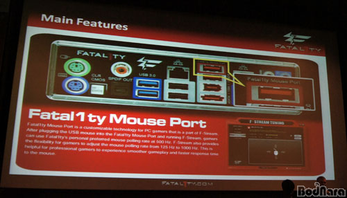 ƯÈ÷, Ÿ»çÀÇ Ç÷¡±×½Ê ¸ÞÀκ¸µå¿Í Â÷º°ÈµÇ´Â ASRock Fatal1ty ¸ÞÀκ¸µå¸¸ÀÇ Æ¯Â¡À¸·Î´Â °ÔÀ̸ӵéÀÇ ÁÖ¿ä ÀÔ·ÂÀåÄ¡ÀÎ ¸¶¿ì½ºÀÇ polling rate¸¦ 125HzºÎÅÍ 1000Hz±îÁö Á¶ÀýÇÒ ¼ö ÀÖ´Â Àü¿ë Æ÷Æ®ÀÎ Fatal1ty ¸¶¿ì½º Æ÷Æ®¸¦ Á¦°øÇØ º¸´Ù ³ôÀº Á¤È®µµ¸¦ ±â´ëÇÒ ¼ö ÀÖ´Ù.