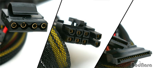 ¸ðµâ·¯ ¹æ½ÄÀ¸·Î Á¦°øµÇ´Â 4ÇÉ Ä¿³ØÅÍ´Â ÄÉÀÌºí ´ç 2°³(Ç÷ÎÇÇ¿ë 4ÇÉ 1°³ Æ÷ÇÔ)¿Í 3°³·Î ÃÑ 5°³¸¦, SATA Ä¿³ØÅÍ´Â ÄÉÀÌºí ´ç 3°³¾¿ ÃÑ 6°³, PCIe Ä¿³ØÅÍ´Â 8(6+2)ÇÉ Ä¿³ØÅÍ 1°³°¡ Á¦°øµÇ¸ç, ÀÌµé ¸ðµâ·¯ ¹æ½Ä Ä¿³ØÅ͸¦ ºñ·ÔÇØ ±âº» Á¦°øµÇ´Â Ä¿³ØÅÍ¿¡µµ Àü·Â ¼Õ½ÇÀ» ¸·°í ³ëÀÌÁ ÁÙÀÌ°í ºÎ½Ä ¹æÁö¸¦ À§ÇÑ ±Ýµµ±Ý 󸮰¡ µÇ¾î ÀÖ´Ù.