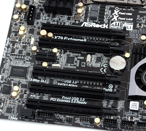 ÇÑÆí X79 Ĩ¼ÂÀº USB 3.0À» Áö¿øÇÏÁö ¾ÊÀ¸¹Ç·Î X79 Extreme9¿¡´Â º°µµÀÇ USB 3.0 ÄÁÆ®·Ñ·¯(TI TUSB7340)°¡ žÀçµÇ¾î USB 3.0 Æ÷Æ®°¡ Á¦°øµÈ´Ù. TI TUSB7340Àº 4°³ÀÇ USB 3.0 Æ÷Æ®¸¦ Áö¿øÇϴµ¥, ÀÌ Á¦Ç°¿¡´Â 2°³°¡ ÀåÂøµÇ¾î ÇÉÇì´õ¸¦ ÅëÇØ ÄÉÀ̽º Àü¸éÀ¸·Î Æ÷Æ® 4°³, ¹éÆÐ³Î·Î Æ÷Æ® 4°³¸¦ Á¦°øÇÑ´Ù.