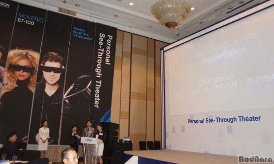 Çѱ¹¿¦¼Õ(´ëÇ¥ ½ºÁîŰ ¸ðÅä½Ã)¿¡¼ ¾È°æ ÇüÅ·ΠÁÖº¯ ȯ°æ°ú µ¿½Ã¿¡ º¼ ¼ö ÀÖ´Â Çìµå¸¶¿îÆ® µð½ºÇ÷¹ÀÌ(HMD) Á¦Ç°ÀÎ '¸ðº£¸®¿À(MOVERIO) BT-100'À» ±¹³» ¼±º¸¿´´Ù.