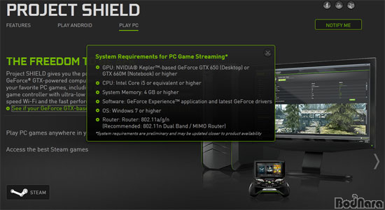 ¶ÇÇÑ ¿£ºñµð¾Æ ÁöÆ÷½º GTX 650 ÀÌ»ó±Þ GPU°¡ ÀåÂøµÈ PC°¡ ÀÖ´Ù¸é ½¯µå¸¦ ¹«¼± °ÔÀÓ ¸®½Ã¹ö·Î »ç¿ëÇÒ ¼ö ÀÖ´Ù. ¿£ºñµð¾Æ ÁöÆ÷½º ÀͽºÆä¸®¾ð½º (GeForce Experience)°¡ Áö¿øÇÏ´Â °ÔÀÓ ¹× ½ºÆÀ(STEAM)ÀÇ ºò ÇÈÃÄ(Big Picture) ±â´ÉÀ» ÅëÇØ PC¿Í ½¯µå¸¦ ´ÑÅÙµµ Wii Uó·³ Äְܼú ¹«¼± ¸®½Ã¹ö(ÄÁÆ®·Ñ·¯)ó·³ Ȱ¿ë °¡´ÉÇÏ´Ù.