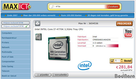 6¿ù Áß Ãâ½ÃµÉ °ÍÀ¸·Î ¿¹»óµÇ°í ÀÖ´Â ÀÎÅÚÀÇ Â÷¼¼´ë CPUÀÎ ÇϽºÀ£ ÇÁ·Î¼¼¼ÀÎ ÄÚ¾î i7 4770K°¡ ÀÏºÎ ÇØ¿Ü ¼îÇθô¿¡ µî·ÏµÈ °ÍÀÌ È®ÀεǾú´Ù.