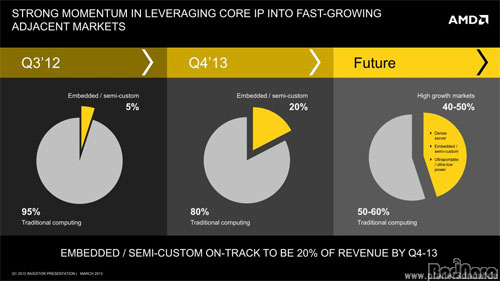 ÀüÅëÀûÀÎ ÄÄÇ»ÆÃ ÁÖ·Î CPU¿Í GPU ºÐ¾ß°¡ ÁÖ·ÂÀÎ AMD´Â 2013³â 4ºÐ±â±îÁö Â÷¼¼´ë Ç÷¹À̽ºÅ×ÀÌ¼Ç 4 (Playstation 4)¿¡ žÀçÇÒ APU °ø±Þ µîÀ» ÅëÇØ ±âÁ¸ 5%¿¡ ¸Ó¹°´ø ÀÓº£µðµå ¹× °ÔÀÓ±â¿ë APU °ø±Þ µî°ú °°Àº Ưº° ÁÖ¹®, ¼¹ö ½ÃÀåÀ» 20%·Î È®ÀåÇÒ °èȹÀÌ´Ù.