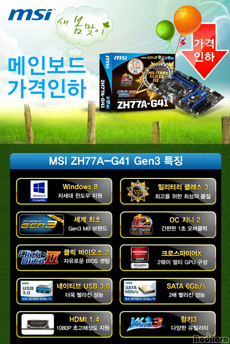 MSIÀÇ Çѱ¹ °ø½Ä µð½ºÆ®¸®ºäÅÍÀÎ ¢ß¿þÀÌÄÚ½º(´ëÇ¥:°í¹ÎÁ¾)°¡ »õ º½À» ¸ÂÀÌÇÏ¿© MSI X79 / ZH77A / B75 ¸ÞÀκ¸µå ½Ã¸®ÁîÀÇ °¡°ÝÀ» ÀÎÇÏÇÏ¿´´Ù°í ¹àÇû´Ù.