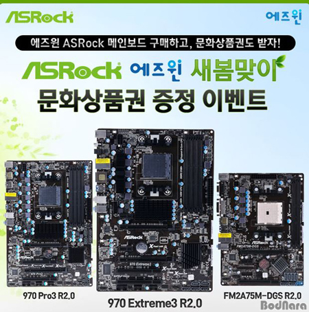 À̹ø ¹®È»óǰ±Ç ÁõÁ¤ À̺¥Æ®´Â ¢ß¿¡ÁîÀ©ÀÇ ASRock AMD ¸ÞÀκ¸µå ±¸¸Å°í°´À» ´ë»óÀ¸·Î ÁøÇàµÇ¸ç ´ë»ó Á¦Ç°Àº [ASRock 970 Extreme3 R2.0 ¿¡ÁîÀ©]°ú [ASRock 970 Pro3 R2.0 ¿¡ÁîÀ©], [ASRock FM2A75M-DGS R2.0]ÀÌ´Ù.