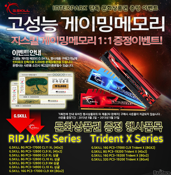 À̳뺣ÀÌ¼ÇÆ¼¹Â(http://timu.co.kr )°¡ Áö½ºÅ³(G.SKILL)ÀÇ °í¼º´É ¸Þ¸ð¸® Á¦Ç° ±¸¸ÅÀÚ¸¦ ´ë»óÀ¸·Î ÇÏ´Â ¹®È»óǰ±Ç ÁõÁ¤ À̺¥Æ®¸¦ ½Ç½ÃÇÑ´Ù°í ¹àÇû´Ù.