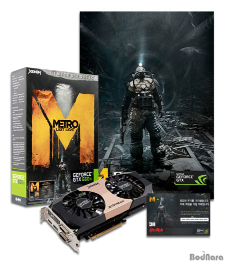 ±¹³»¿¡´Â ÀÌ¿¥ÅØÀ» ÅëÇØ ¼±º¸ÀÌ´Â '¸ÞÆ®·Î: ¶ó½ºÆ® ¶óÀÌÆ®' ÇÑÁ¤ÆÇ ±×·¡ÇÈÄ«µå´Â GeForce GTX 660 °ú GeForce GTX 660 Ti ·Î Á¦ÀÛ µÇ¾úÀ¸¸ç, '¸ÞÆ®·Î: ¶ó½ºÆ® ¶óÀÌÆ®' ÀÏ·¯½ºÆ®·Î µðÀÚÀÎµÈ ÆÐŰÁö¿Í °ÔÀÓ ÄíÆù, Æ÷½ºÅͰ¡ ÇÔ²² Á¦°øµÈ´Ù.
