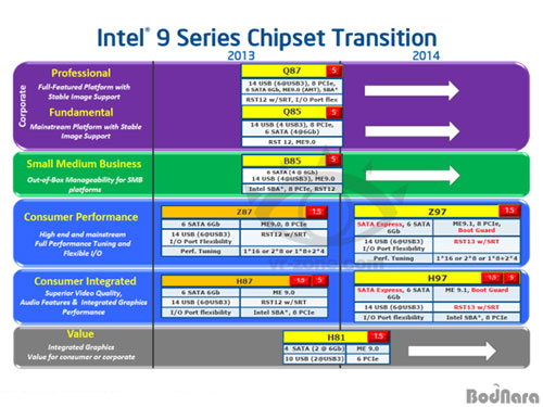 LGA1150 ¼ÒÄÏ ±â¹Ý ÇϽºÀ£ ÇÁ·Î¼¼¼´Â 2014³â±îÁö ¸ÞÀνºÆ®¸²À¸·Î Áö¼ÓµÇ¸ç ºñÁî´Ï½º¿ë Q87, Q85, B85, ±×¸®°í H81 Ĩ¼ÂÀÌ ·Îµå¸Ê¿¡ ³ªÅ¸³µÀ¸¸ç ÀÎÅÚ Z87°ú H87Àº µ¥½ºÅ©Å¾ ½ÃÀå¿¡¼ ÀÎÅÚ Z77/ H77 Ĩ¼ÂÀ» À̾î¹Þ´Â´Ù.