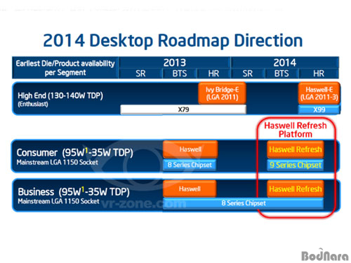 ÀÎÅÚÀº ¿ÃÇØ ¾ÆÀ̺ñºê¸´Áö (Ivy Bridge) ÈļÓÀ¸·Î ÇϽºÀ£ (Haswell)À» Ãâ½ÃÇϰí 2014³â ¿¹»óµÈ ÇϽºÀ£ ÈÄ¼Ó ºê·ÎµåÀ£ (Broadwell)Àº 2015³âÀ¸·Î ¿¬±â, Áß°£ÀÇ °ø¹éÀº ÇϽºÀ£ ¸®ÇÁ·¹½Ã¿Í ÀÎÅÚ 9 ½Ã¸®Áî Ĩ¼ÂÀÌ À̾î¹ÞÀ» °ÍÀ¸·Î ¾Ë·ÁÁ³´Ù.