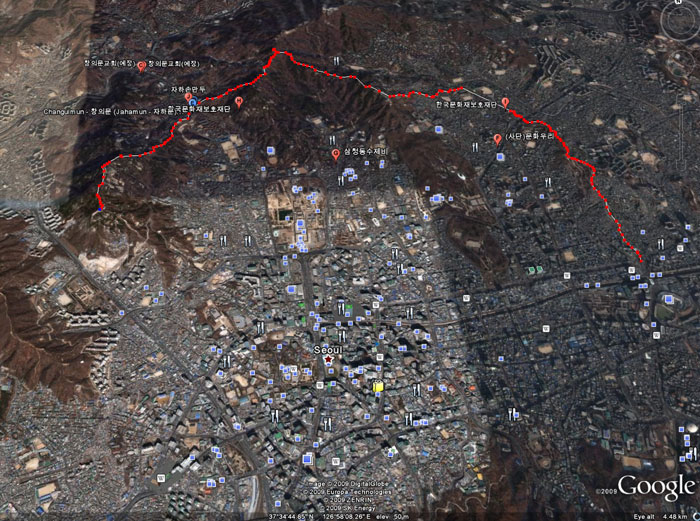 ¿À¸¥ÂÊ ÈïÀÎÁö¹®(ýéìÒñýÙý, µ¿´ë¹®) ¿¡¼ Çýȹ® (û³ûùÚ¦, µ¿¼Ò¹®), ¼÷Á¤¹®(âÜïþÚ¦, ºÏ´ë¹®)À»Áö³ª âÀǹ® (óàëùÚ¦, ºÏ¼¹®) ±îÁö ¼¿ï ¼º°ûÀ» µû¶ó °È´Â ¿ª»ç üÇè°ú »êÃ¥ ÄÚ½ºÀÔ´Ï´Ù. (Áöµµ»ó ¿ÞÂÊ Çѱ¹¹®Èº¸È£Àç´Ü - âÀǹ® Ç¥½Ã±îÁö)
