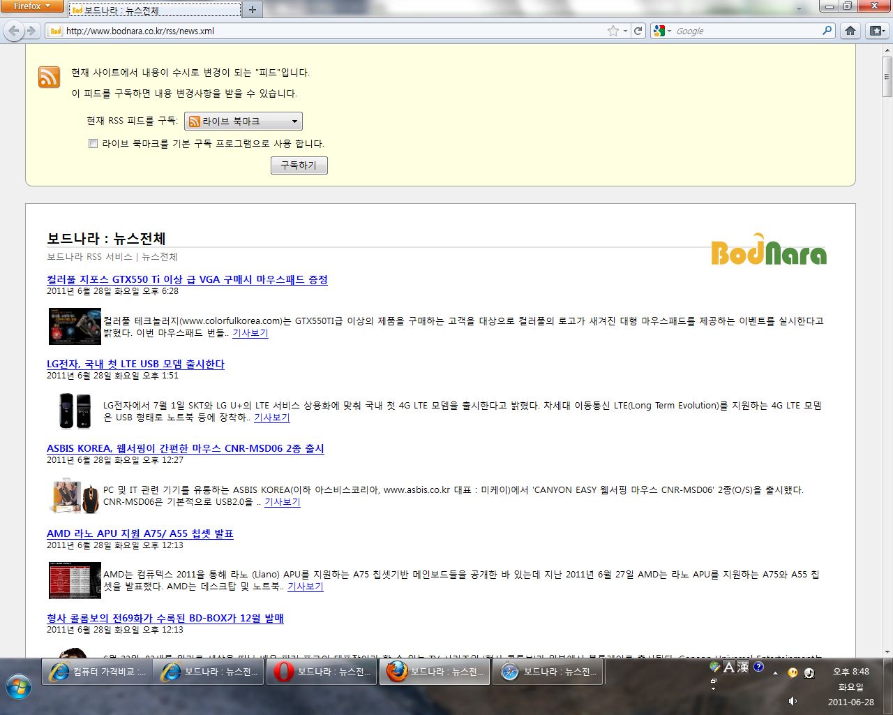 ¿À´Ã ¿ì¿¬È÷ ¿ÀÆä¶ó¿¡¼ RSS¸¦ ½ÇÇà½ÃŰ´Ï ´Ù¸¥ À¥ºê¶ó¿ìÀúº¸´Ù ±²ÀåÈ÷ ±ò²ûÇÏ°Ô ³ª¿Àµå¶ó±¸¿ä.