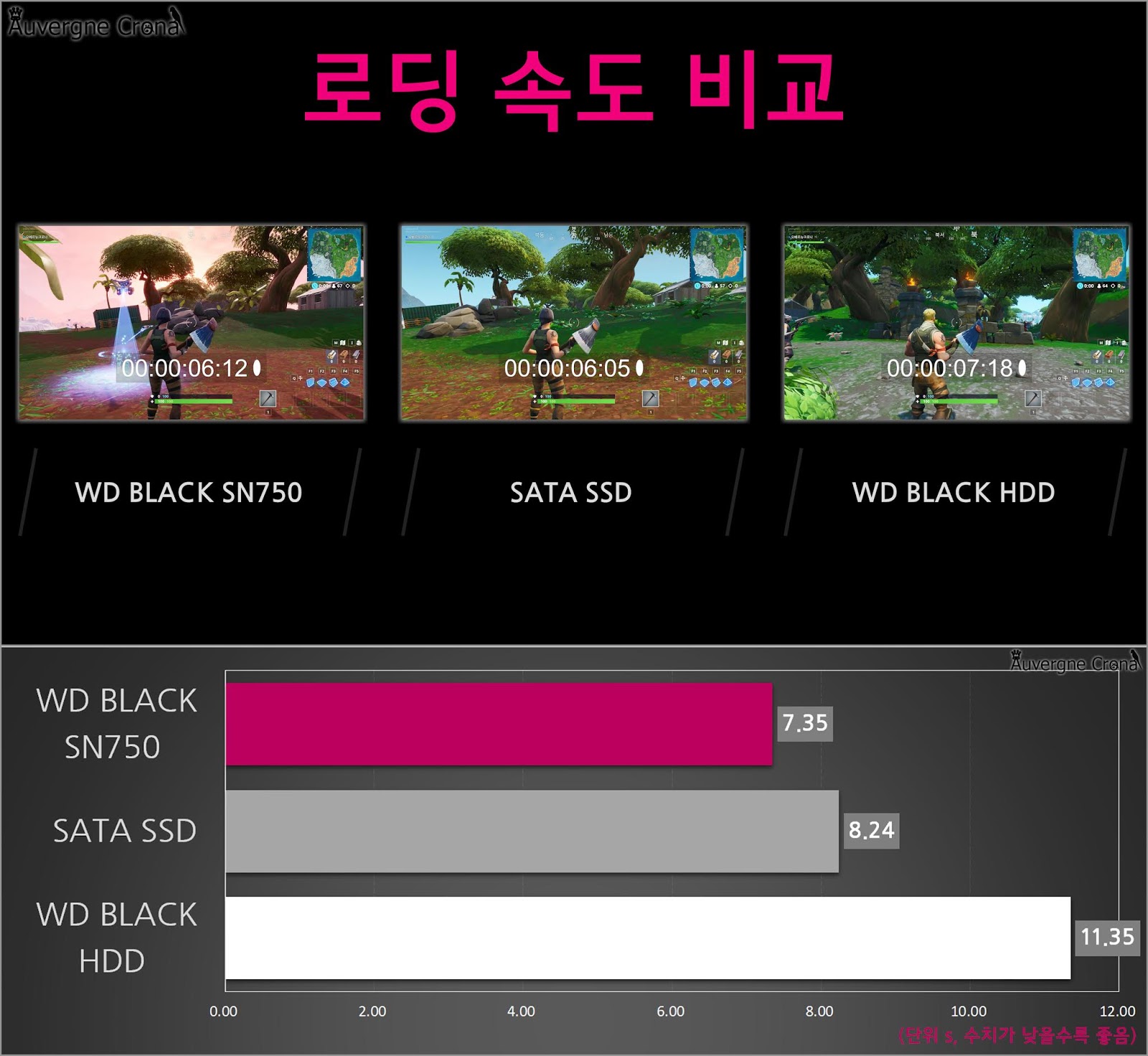 ¡ã 5ȸÀÇ ÃøÁ¤¿¡¼­ ÃÖ´Ü ¼Ò¿ä½Ã°£Àº ¿ÀÈ÷·Á SATA SSD°¡ 6.05ÃÊ·Î °¡Àå »¡¶úÀ¸¸ç, SN750ÀÌ 6.12ÃÊ·Î 0.07ÃÊÀÇ Â÷À̸¦ º¸ÀÌ¸ç ±× µÚ¸¦ À̾ú°í, HDD°¡ 7.18ÃÊ·Î °¡Àå ´À·È½À´Ï´Ù. Á¤È®ÇÑ ¼öÄ¡ ºñ±³¸¦ À§ÇØ, 5ȸ ÁøÇà ÈÄ Æò±ÕÀ» ³»ºÃ½À´Ï´Ù. NVMe SSDÀÎ SN750ÀÌ 7.35ÃÊ·Î ¿ª½Ã °¡Àå ºü¸£°í, SATA SSD°¡ 8.24ÃÊ, HDD°¡ 11.35ÃÊ·Î ÃøÁ¤µÇ¾ú½À´Ï´Ù. SN750ÀÇ °æ¿ì, ÃÖ´ë 10Ãʸ¦ ³Ñ±âÁö ¾ÊÀ¸¸é¼­, Æò±Õ¼Óµµ¿¡¼­ ¿ì¼öÇÔÀ» º¸¿´½À´Ï´Ù. ¹èƲ ·Î¾â À帣 Ư¼º»ó, ÀüÅõ°¡ Àæ°í, ¸ÅĪ Ƚ¼ö°¡ ¸¹±â ¶§¹®¿¡ ²ÙÁØÇÏ°Ô ÁÁÀº ¼º´ÉÀ» À¯ÁöÇØ¾ß Çϴµ¥, ±×·± Á¡¿¡ À־ SN750Àº ÁÁÀº ¸ð½ÀÀ» º¸À̰í ÀÖ½À´Ï´Ù.