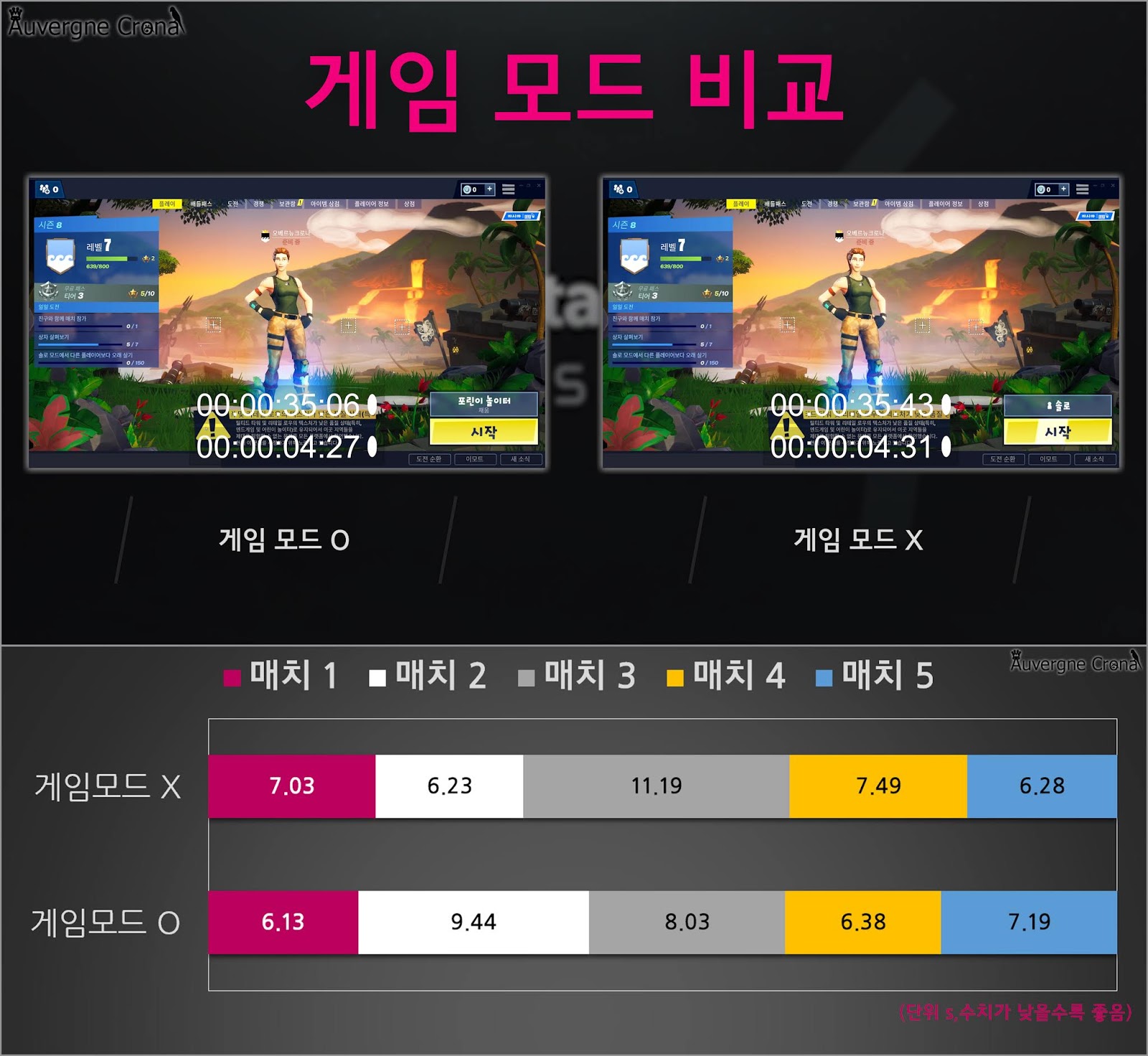 ¡ã °°Àº ¹æ½ÄÀ¸·Î, WD SSD ´ë½Ãº¸µå[¸µÅ©]ÀÇ °ÔÀÓ ¸ðµå¸¦ ÄÒ »óÅÂ¿Í ²ö »óŸ¦ ºñ±³ÇغýÀ´Ï´Ù. °ÔÀÓ ¸ðµå´Â, SSD°¡ Ȱ¼ºÈ­µÈ »óŸ¦ °è¼Ó À¯Áö½ÃÄÑ, °ÔÀÓ Áß¿¡ ¹ß»ýÇÏ´Â ¹ö¹÷ÀÓÀ̳ª Áö¿¬½Ã°£À» ÃÖ¼ÒÈ­ÇÒ ¼ö ÀÖ´Â ±â´ÉÀ¸·Î, ÇØ´ç ±â´ÉÀ» Ä×À» ¶§°¡ ²°À» ¶§º¸´Ù ·Îµù ½Ã°£ÀÌ ´õ¿í ´ÜÃàµÇ¾ú½À´Ï´Ù. °¢°¢ 5ȸÀÇ ¸ÅÄ¡¸¦ ºÐ¼®ÇÏ¿© Æò±Õ ³ÂÀ» ¶§, °ÔÀÓ ¸ðµå¸¦ Ä×À» ¶§´Â 7.35ÃÊ, ²°À» ¶§´Â 7.48ÃÊ·Î, ¾à 0.13ÃÊ Á¤µµÀÇ Â÷À̰¡ ¹ß»ýÇß½À´Ï´Ù. ƯÈ÷, °ÔÀÓ ¸ðµå¸¦ Ä×À» ¶§ 10Ãʸ¦ ³Ñ¾î°¡Áö ¾Ê´Â ²ÙÁØÇÔÀ» º¸¿© ´«±æÀ» ²ø¾ú½À´Ï´Ù.