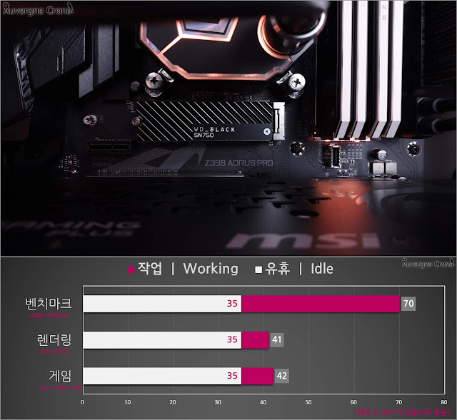 ¡ã ¸ðµç ÃøÁ¤ÀÌ ³¡³ª°í ³ ÈÄ, °¢ »óȲº°·Î ¿Âµµ¸¦ ÃøÁ¤Çß½À´Ï´Ù. ÃøÁ¤ ÇÁ·Î±×·¥Àº CPUID HWMonitor°¡ »ç¿ëµÇ¾ú½À´Ï´Ù. SN750Àº M.2 ¼ÒÄÏÀÇ À§Ä¡»ó, ÇÁ·Î¼¼¼ ¹Ù·Î ¾Æ·¡¿¡ ÀåÂøµÇ¾î ÀÖ¾î, ¾Æ¹«·¡µµ ¹ß¿À» ÇØ¼ÒÇϱ⠽±Áö ¾Ê½À´Ï´Ù. ±×·³¿¡µµ ºÒ±¸Çϰí, ´ëºÎºÐÀÇ »óȲ¿¡¼ Æò±ÕÀûÀ¸·Î 41~45µµ¸¦ ±â·ÏÇßÀ¸¸ç, À¯ÈÞ ½Ã¿¡´Â 35µµ·Î ÃøÁ¤µÇ¾ú½À´Ï´Ù. ƯÈ÷, ÀúÀå ÀåÄ¡¿¡ ºÎ´ãÀ» ÁÖ´Â º¥Ä¡¸¶Å©¿¡¼µµ Æò±ÕÀûÀ¸·Î 42µµÀÇ ¿Âµµ¸¦ ±â·ÏÇßÀ¸¸ç, ÀúÀå ÀåÄ¡¿¡ ¾öû³ ºÎÇϸ¦ ÁÖ´Â ³ª·¡¿Â Å×½ºÆ®¿¡¼µµ, 70µµ¸¦ ³Ñ±âÁö ¾Ê´Â °·ÂÇÑ ¹ß¿ ÇØ¼Ò ´É·ÂÀ» º¸¿©Áá½À´Ï´Ù. ¶Ç, ºñ·Ï ½ºÆåÀº ´Ù¸£Áö¸¸, 9ÁÖ µ¿¾È ¹æ¿ÆÇÀÌ ¾ø´Â 250GB Á¦Ç°ÀÇ ¿Âµµ ÃøÁ¤À» ÇØ¿Ô´Âµ¥, °°Àº »óȲ¿¡¼ ´Ü¼øÇÏ°Ô ºñ±³Çصµ 10µµ ÀÌ»óÀÇ Â÷À̸¦ º¸À̰í ÀÖ½À´Ï´Ù. SN750Àº, 500GB¿Í 1TB ÀÌ»óºÎÅÍ EKWBÀÇ ¹æ¿ÆÇÀÌ Å¾ÀçµÈ Á¦Ç°À» ±¸ÀÔÇÒ ¼ö Àֱ⠶§¹®¿¡, ¿Âµµ¿¡ ¹Î°¨ÇÏ½Ã´Ù¸é ¹æ¿ÆÇÀÌ Å¾ÀçµÈ Á¦Ç°À» Àû±Ø Ãßõµå¸³´Ï´Ù.