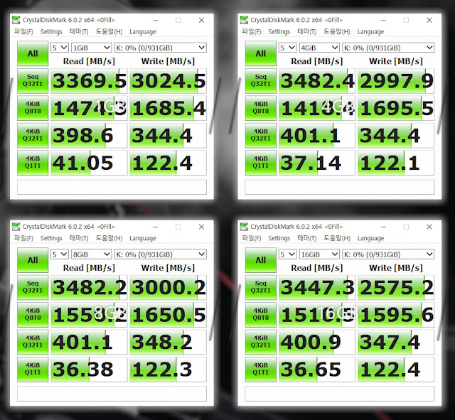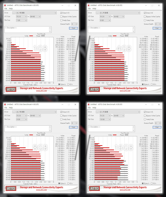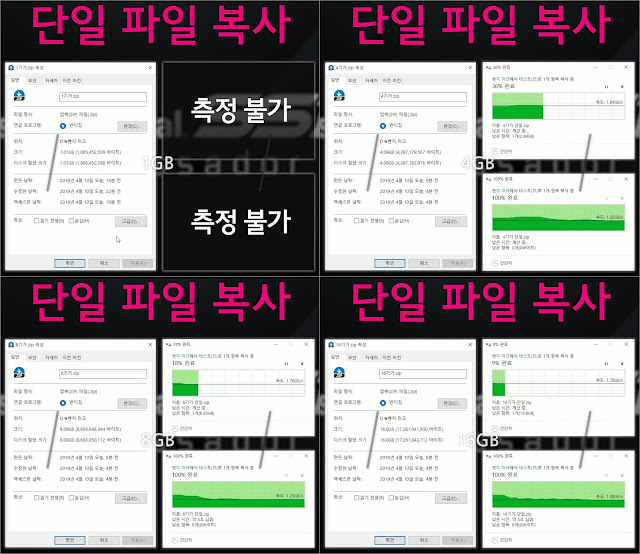 ¡ã 1GB, 4GB, 8GB, 16GBÀÇ 4°¡Áö ¿ë·®À¸·Î ´ÜÀÏ ÆÄÀÏ º¹»ç Å×½ºÆ®¸¦ ÁøÇàÇß½À´Ï´Ù. ÀÌ Å×½ºÆ®´Â, ÄÁÆ®·Ñ·¯¿Í ¼øÂ÷ ¾²±â ¼Óµµ¸¦ ü°¨ÇÒ ¼ö ÀÖÀ¸¸ç, 1GBÀÇ ´ÜÀÏ ÆÄÀÏÀÇ °æ¿ì, âÀÌ ¶ß±âµµ Àü¿¡ À̵¿ÀÌ ¿Ï·áµÇ¾î ÃøÁ¤ÇÒ ¼ö°¡ ¾ø¾ú½À´Ï´Ù. À̵¿¼Óµµ´Â 4GB ÆÄÀϺÎÅÍ È®ÀÎÇÒ ¼ö ÀÖ¾ú´Âµ¥¿ä, ½ÃÀÛ ¼Óµµ´Â ÃÖ´ë 1,840MB/s¿¡¼ ½ÃÀÛÇÏ¿©, 16GB·Î ¿ë·®ÀÌ Áõ°¡ÇÒ¼ö·Ï ÃÖÀú 1,080MB/sÀÇ ¼Óµµ¸¦ º¸¿´½À´Ï´Ù.