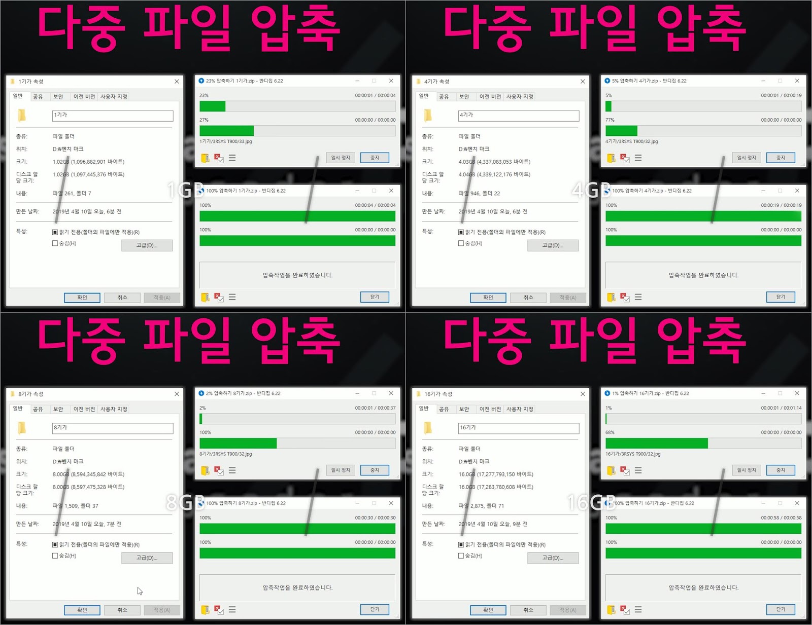 ¡ã 1GB, 4GB, 8GB, 16GBÀÇ 4°¡Áö ¿ë·®À¸·Î ´ÙÁß ÆÄÀÏ ¾ÐÃà Å×½ºÆ®¸¦ ÁøÇàÇß½À´Ï´Ù. ¿©·¯ Æú´õ¿Í ÆÄÀϵéÀÌ ´ã±ä ½ÇÁ¦ ÀÚ·á°¡ »ç¿ëµÇ¾úÀ¸¸ç, ·£´ý ¾²±â¿Í Àбâ ÀÛ¾÷ÀÌ º¹ÇÕÀûÀ¸·Î ÀÌ·ç¾îÁ®, ¾ÐÃà ½Ã°£ÀÌ ÂªÀ»¼ö·Ï ÀúÀå ÀåÄ¡ÀÇ ¼º´ÉÀÌ ÁÁ´Ù°í ÇÒ ¼ö ÀÖ½À´Ï´Ù. 1GBÀÇ ÆÄÀϵéÀ» ¾ÐÃàÇÏ´Â µ¥¿¡´Â 4Ãʰ¡ ¼Ò¿äµÇ¾úÀ¸¸ç, ÁøÇà ¼Óµµ¿¡ º¯È ¾øÀÌ °ðÀå ¾ÐÃàµÇ¾ú½À´Ï´Ù. ³ª¸ÓÁö ¿ë·®µéµµ °¢°¢ 19ÃÊ, 30ÃÊ, 58Ãʰ¡ ¼Ò¿äµÇ¾úÀ¸¸ç, ¾ÐÃàÇÏ´Â µ¥¿¡ ¼Ò¿äµÈ ½Ã°£À» º¸¸é ¾Ë ¼ö ÀÖµíÀÌ, °í¸¥ ¼Óµµ·Î ¾ÐÃàÀÌ ÁøÇàµÈ´Ù´Â °ÍÀ» º¼ ¼ö ÀÖ½À´Ï´Ù. ÄÁÆ®·Ñ·¯ ¼º´É Âü ´ë´ÜÇϳ׿ä.