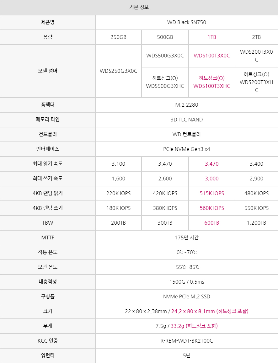 ¿À´ÃÀº, ±×Åä·Ï ±â´Ù¸®´ø SN750 È÷Æ®½ÌÅ© žÀç ¸ðµ¨·Î Àλçµå¸± ¼ö ÀÖ°Ô µÇ¾ú½À´Ï´Ù! À̹ø 5¿ù¿¡ Á¤½ÄÀ¸·Î ±¹³»¿¡ Ãâ½ÃµÇ¾úÀ¸¸ç, ¹æ¿ÆÇ À¯¹«¿¡ µû¶ó ´ë·« 3~4¸¸¿ø Á¤µµÀÇ Â÷À̰¡ ¹ß»ýÇÕ´Ï´Ù. WD BLACK SN750Àº, ÇöÀç SSD ½ÃÀåÀÇ °¡Àå °·ÂÇÑ °æÀï»çÀÎ »ï¼ºÀÇ, °°Àº ü±Þ TLC Á¦Ç°°ú °æÀïÇϰí ÀÖÀ¸¸ç, Á¶±Ý ´õ Àú·ÅÇÑ °¡°Ý´ë¸¦ ¾Õ¼¼¿ö ²ÙÁØÈ÷ ÀÔÁö¸¦ ³ÐÇô ³ª°¡°í ÀÖ½À´Ï´Ù. À̹ø È÷Æ®½ÌÅ©°¡ Æ÷ÇÔµÈ ¸ðµ¨Àº, »ï¼º Á¦Ç°¿¡ ºñÇØ ¿ÀÈ÷·Á ¾à 2¸¸¿ø Á¤µµ ´õ ºñ½ÎÁ³Áö¸¸, È÷Æ®½ÌÅ© ÀÚüÀÇ ¸Þ¸®Æ®¸¦ »ý°¢Çغ¸¸é ÃæºÐÈ÷ ÀÌÇØ°¡ °¡´Â Â÷ÀÌÀÔ´Ï´Ù. È÷Æ®½ÌÅ©°¡ ¾ø´Â Á¦Ç°Àº, »ï¼º Á¦Ç° ´ëºñ 2¸¸¿ø Á¤µµ Àú·ÅÇÕ´Ï´Ù.