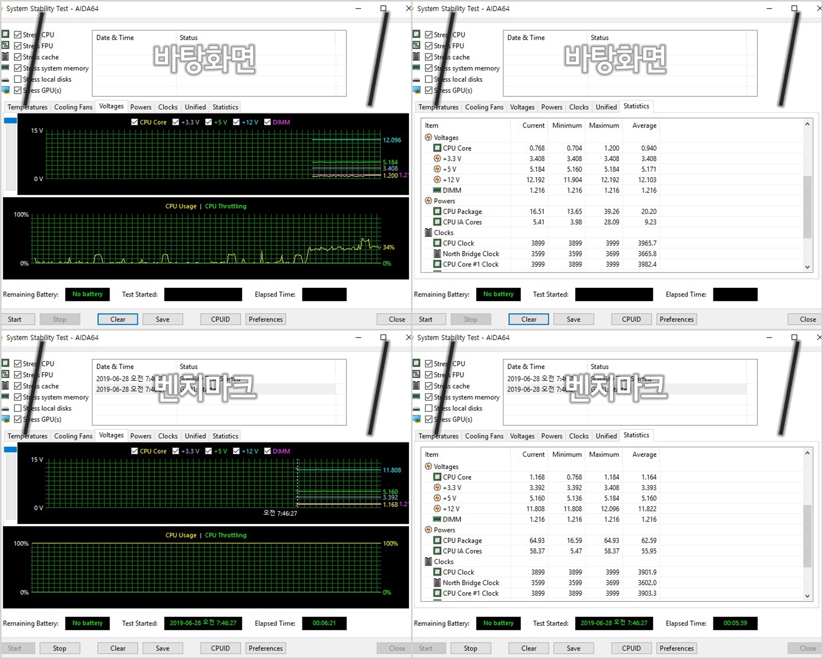 ¡ã AIDA64 ¾ÈÁ¤¼º Æò°¡¸¦ ÅëÇØ À¯ÈÞ(¹ÙÅÁȸé) ½Ã¿Í º¥Ä¡¸¶Å©(CINEBENCH R20) ½Ã Àü¾ÐÀ» ÃøÁ¤Çß½À´Ï´Ù. À¯ÈÞ³ª º¥Ä¡¸¶Å© »óÅ ¸ðµÎ, ¿ÀÂ÷ ¹üÀ§ ³» »ó´çÈ÷ ¾ÈÁ¤ÀûÀÎ ¸ð½ÀÀÔ´Ï´Ù.