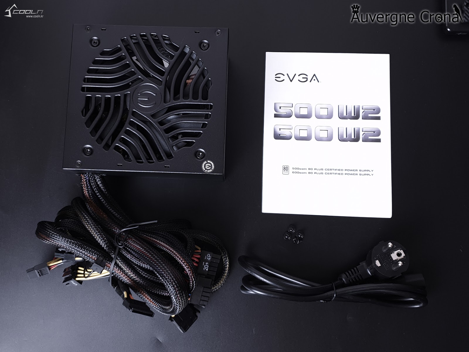 ¡ã ±¸¼ºÇ°Àº, EVGA 500W W2 ÆÄ¿ö¼ÇöóÀÌ º»Ã¼¿Í Àü¿ø ÄÉÀ̺í, Á¶¸³¿ë ³ª»ç 4°³, »ç¿ëÀÚ ¸Å´º¾ó·Î ±¸¼ºµÇ¾î ÀÖ½À´Ï´Ù.