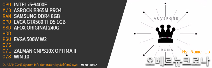 ¡ã º¥Ä¡¸¶Å©¿¡ »ç¿ëµÈ ½Ã½ºÅÛ »ç¾çÀÔ´Ï´Ù. ÄÉÀ̽º ¾øÀÌ Àü·ÂÀ» ÃøÁ¤ÇßÀ¸¸ç, °¡¼ººñ ¼¼ÆÃ´ä°Ô ÀÎÅÚÀÇ 9400F ÇÁ·Î¼¼¼¿Í GTX 560 Ti½Ã¸®Áî·Î ²Ù¸çºÃ½À´Ï´Ù.