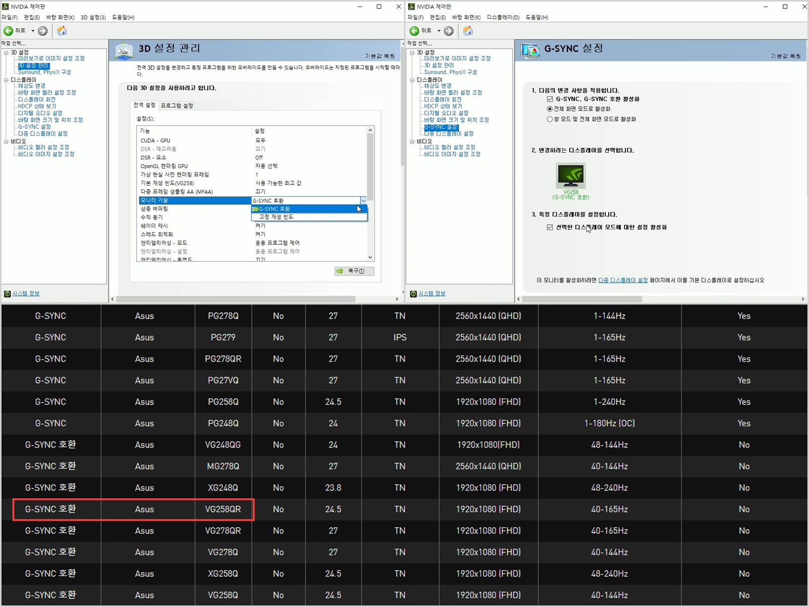 ¡ã NVIDIA Á¦¾îÆÇ¿¡¼, G-SYNC ȣȯ ¼³Á¤À» ÇÒ ¼ö ÀÖ½À´Ï´Ù. ASUS VG258QRÀº, ¿£ºñµð¾Æ¿¡ G-SYNC ȣȯ °ø½Ä ¸ð´ÏÅÍ·Î µî·ÏµÈ Á¦Ç°ÀÔ´Ï´Ù.