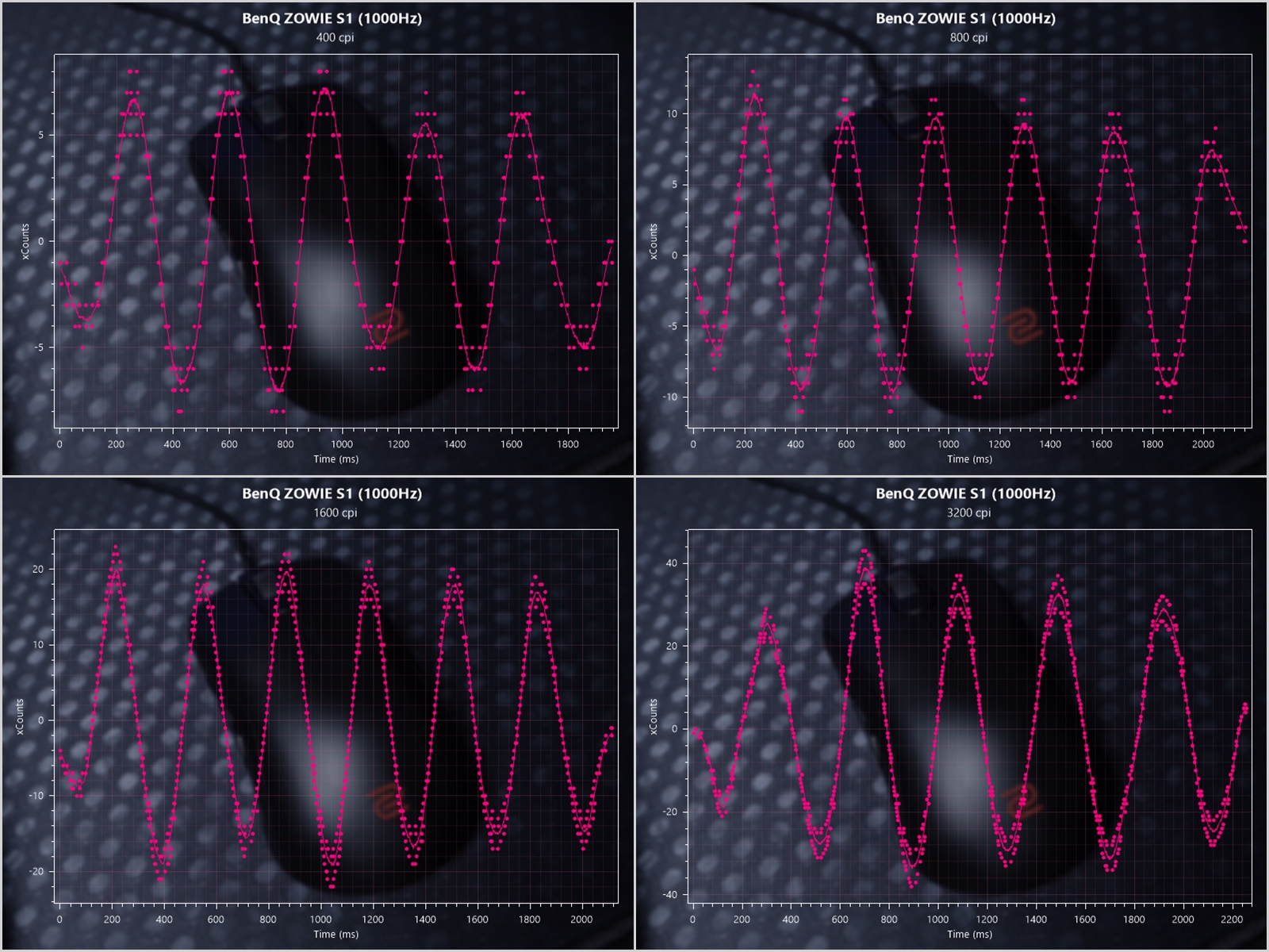 ¡ã 1,000HzÀÇ µ¿ÀÏÇÑ Æú¸µ ·¹ÀÌÆ® °ªÀ¸·Î, DPI¸¸ º¯°æÇϸ鼭 ÃøÁ¤À» ÇØºÃ½À´Ï´Ù. Å©°Ô ¿øÀ» ±×¸®¸é¼­ ÃøÁ¤À» ÁøÇàÇßÀ¸¸ç, Æú¸µ ·¹ÀÌÆ®³ª DPI°¡ Áõ°¡Çϸ鼭, ƯÁ¤ ºÎºÐÀÇ ¿ÀÂ÷ ¹üÀ§°¡ Áõ°¡Çß½À´Ï´Ù. Å×½ºÆ® ȯ°æÀ̳ª, ÁÖº¯ °£¼·¿¡ µû¶ó °á°ú°¡ ´Þ¶óÁú ¼ö Àֱ⠶§¹®¿¡, Âü°í¸¸ ÇØÁÖ½Ã±æ ¹Ù¶ø´Ï´Ù.