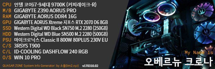 ¡ã º¥Ä¡¸¶Å©¿¡ »ç¿ëµÈ ½Ã½ºÅÛ »ç¾çÀÔ´Ï´Ù. °íÃâ·ÂÀÇ ÆÄ¿ö¼­ÇöóÀÌ¿¡ ¸ÂÃç, ÀÎÅÚÀÇ i7-9700K ÇÁ·Î¼¼¼­¿Í RTX 2070½Ã¸®Áî·Î ²Ù¸çºÃ½À´Ï´Ù.