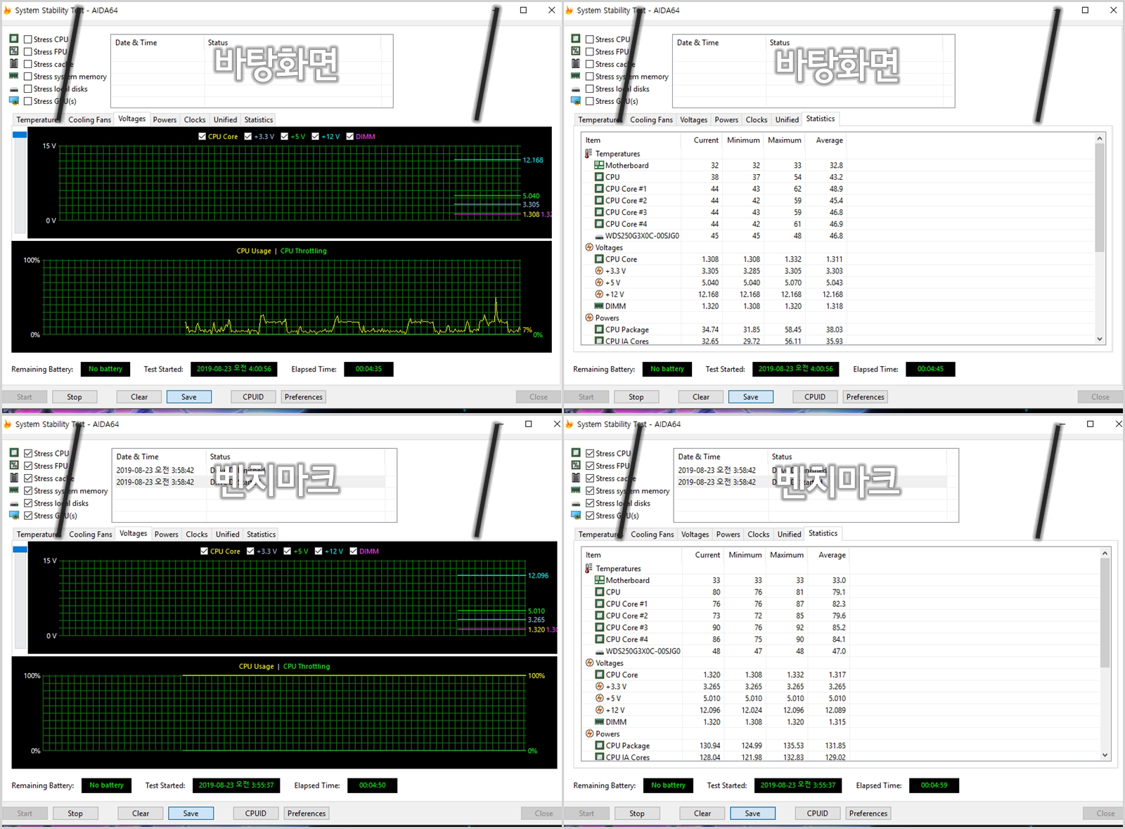 ¡ã º¥Ä¡¸¶Å© ÇÁ·Î±×·¥À» ÅëÇØ À¯ÈÞ(¹ÙÅÁÈ­¸é) ½Ã¿Í º¥Ä¡¸¶Å©(¾ÈÁ¤¼º Æò°¡, CINEBENCH R20) ½Ã Àü¾ÐÀ» ÃøÁ¤Çß½À´Ï´Ù. À¯ÈÞ³ª º¥Ä¡¸¶Å© »óÅ ¸ðµÎ, ¿ÀÂ÷ ¹üÀ§ ³» »ó´çÈ÷ ¾ÈÁ¤ÀûÀÎ ¸ð½ÀÀÔ´Ï´Ù.