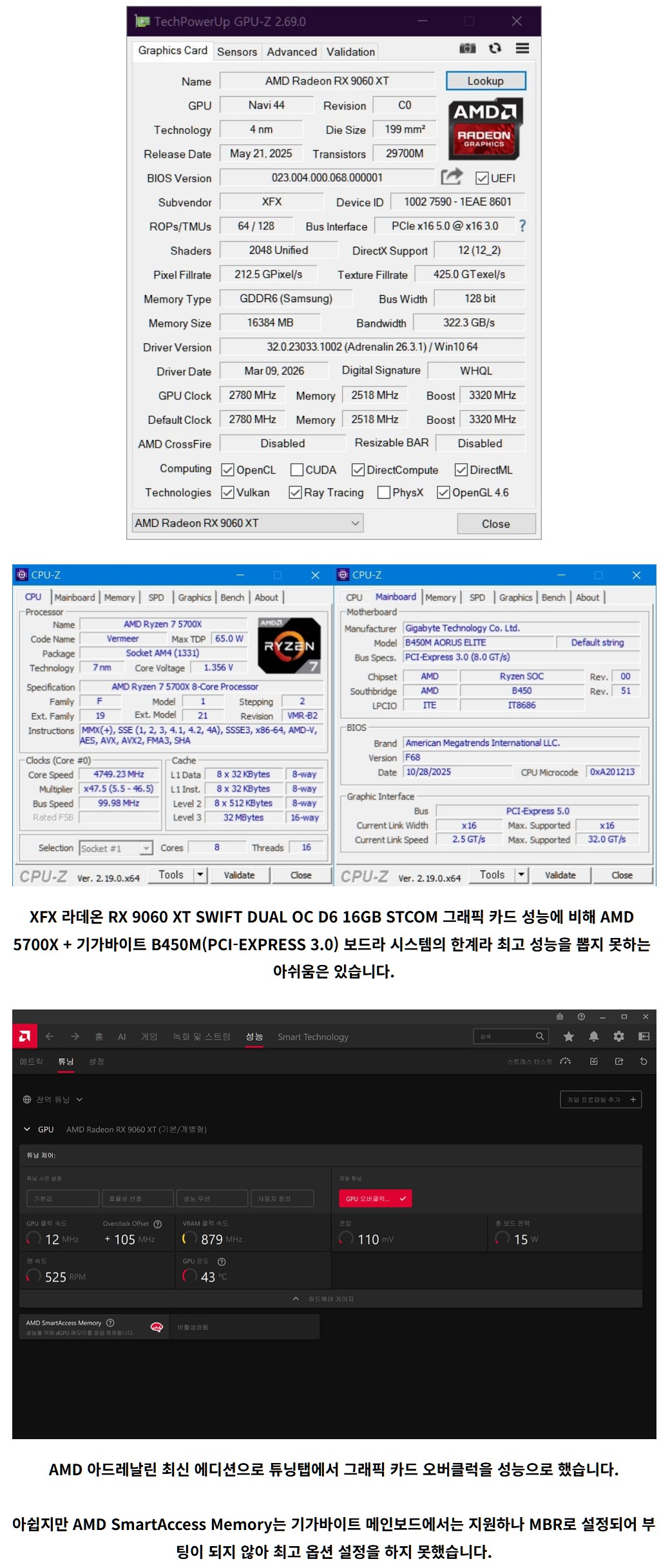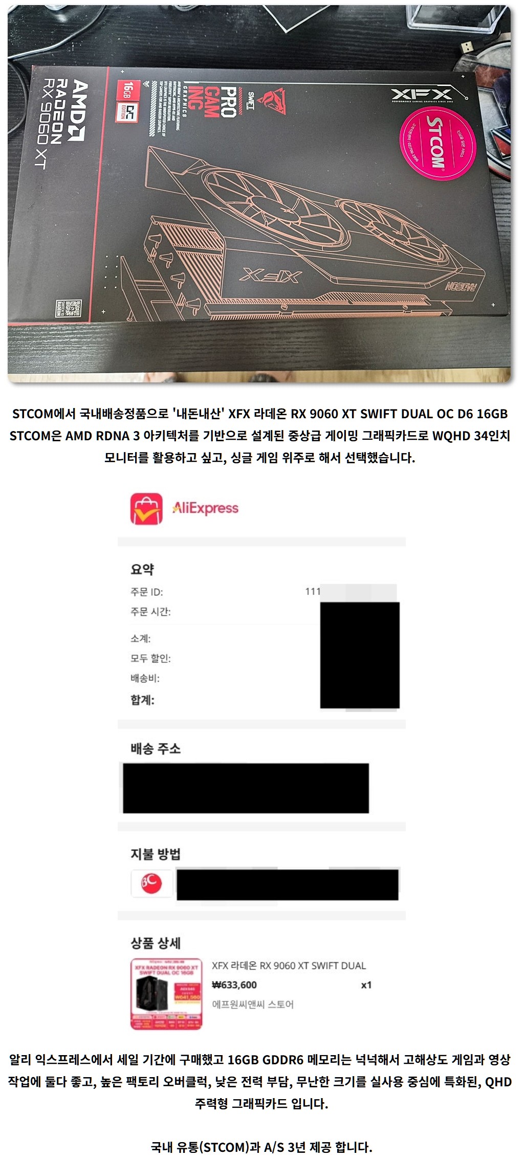 XFX ¶óµ¥¿Â RX 9060 XT SWIFT DUAL OC D6 16GB STCOM ¾Ë¸® ±¸¸Å ³»µ·³»»ê